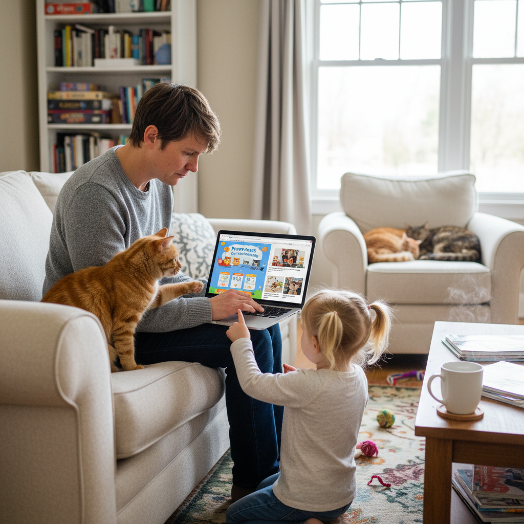 - Testuj różne gry edukacyjne z kotami, notując reakcje dziecka i wspólnie omawiając to, czego się nauczyło.