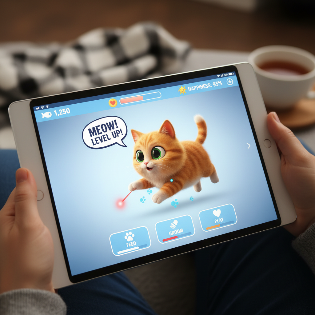 Cyfrowy model kota — aplikacja, gra lub symulator, który pozwala użytkownikowi na interakcję, opiekę i personalizację cyfrowego pupila bez fizycznej obecności zwierzęcia.