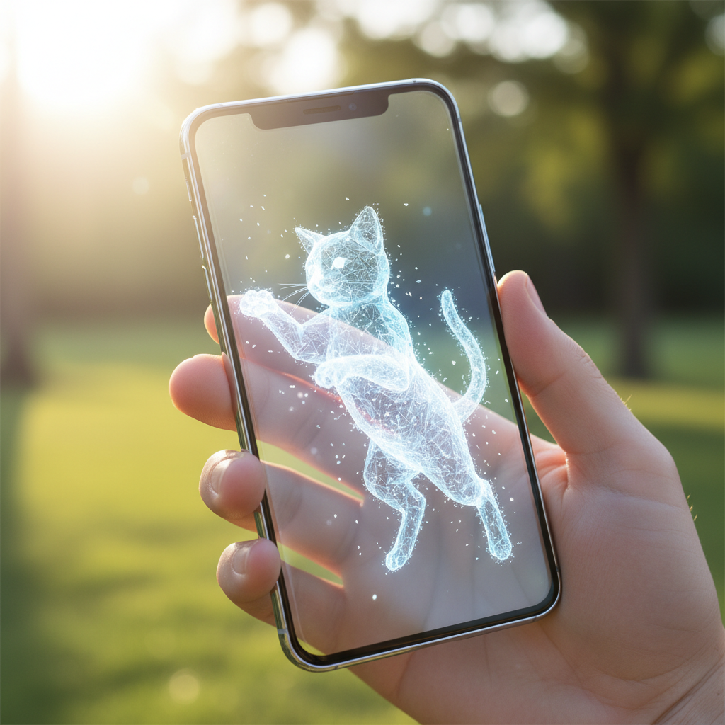 Technologia łącząca świat cyfrowy z rzeczywistym, np. wyświetlanie wirtualnego kota na ekranie telefonu na tle realnego otoczenia.