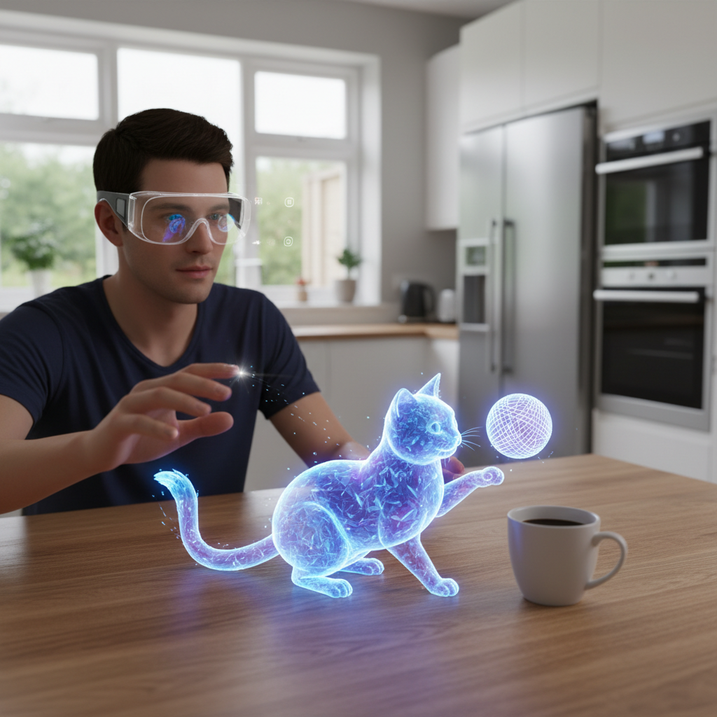 | Rozszerzona rzeczywistość (AR) | Projekcja zwierzaka w otoczeniu | Wirtualny kot na stole kuchennym |