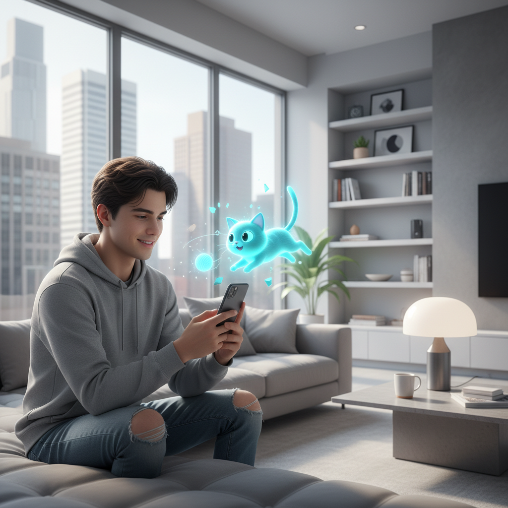 Wyobraź sobie taki scenariusz: budzisz się, sięgasz po telefon, a na ekranie czeka twój wirtualny kotek – rozciąga się, mruczy i patrzy na ciebie z wyczekiwaniem. Po krótkiej interakcji aplikacja przypomina o konieczności nakarmienia pupila. W ciągu dnia dostajesz powiadomienie: „Twój kotek chce się pobawić!” – kilka minut gry w łapanie wirtualnej myszy i już poziom relaksu rośnie. Wieczorem, gdy czujesz się samotny, możesz przytulić kota w AR lub pogadać z innymi „kociarzami” w wirtualnej społeczności.